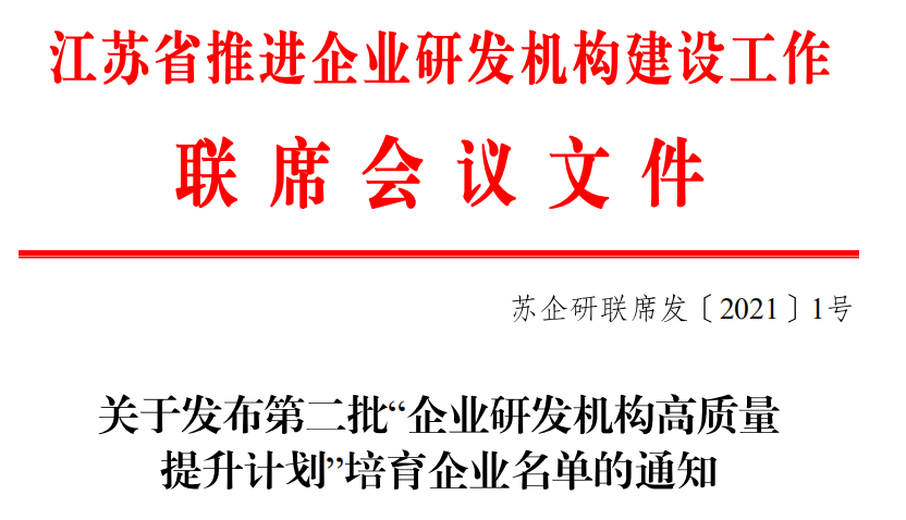 公司成功获批“江苏省万搏(中国)研发机构高质量提升计划培育万搏(中国)”